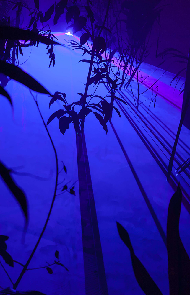 O artista parte da lógica da pintura que se expande e desdobra para o espaço, reproduzindo a ambiência de seus trabalhos numa união entre natureza e tecnologia.