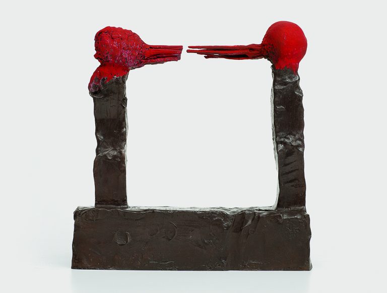 O passado é instrumento, material e conceito, assim como o cinzel, a lixa, o molde, o bronze ou o isopor. O passado é a estrutura imaterial da composição. Algo passível de ser generalizado na arte contemporânea brasileira. Cisne com pincel e cisne com martelo são formas que irradiam das suas bases e vão se prolongando em sinuosidade, distanciando-se de seus centros de gravidade. O bronze consegue moldar essa curvatura a partir dos preceitos mais elementares da escultura, mas em ambas as obras um pincel e um martelo amparam desnecessariamente seus bicos. Torre de ovo é uma referência direta ao trabalho conceitual da escala em Brancusi . O sentido da torre de Brancusi é chamar a atenção para a percepção da escala como algo intuído na escultura, em oposição ao tamanho como grandeza numérica. Na torre de Verzutti, não temos formas geométricas ovaladas e sim ovos, literalmente. Uma antropofagia? Uma antropofagia da antropofagia? Uma revisão historiográfica da antropofagia? Parece ultrapassar tudo isso. A arquitetura de Brasília é um exemplo completo do projeto construtivo, desde a idealização até a execução. Cada peça possui um limite que se conecta ao limite de outra e assim vão se encaixando arestas e silhuetas. No caso da capital federal, esse elemento arquitetônico contrai as qualidades das barreiras, fronteiras, perímetros. As jacas high-tech, da série Brasília, derrubam a fachada das instituições políticas, contrastando a idealização e a realidade nas superfícies e volumetrias da cidade e da fruta.
